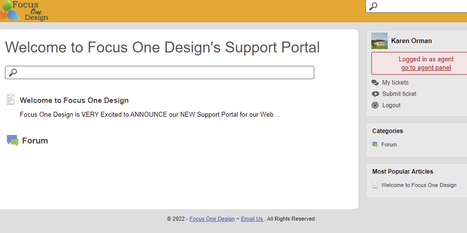 Note – This Portal is our main support portal for our Travel & Photography Site as well, as Focus One Design.